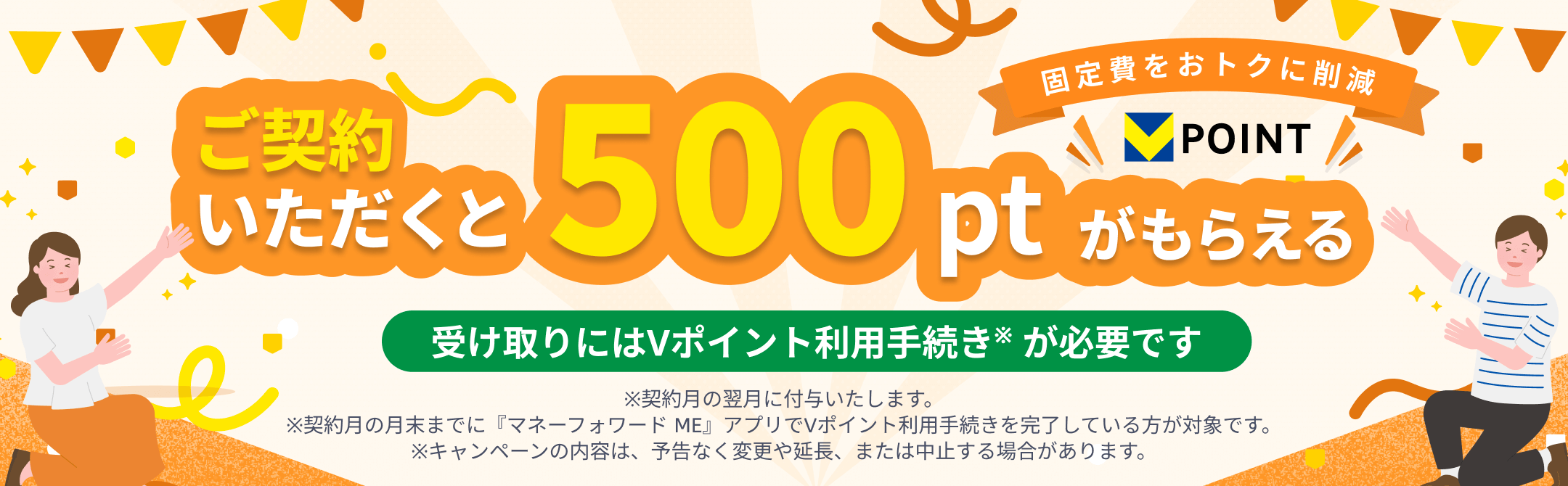 ※Vポイントキャンペーンは契約月の月末までに『マネーフォワード ME』アプリでVポイント利用手続きを完了している方が対象となります。