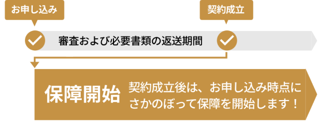 ウェブサイトからお申し込みいただき、審査を完了してご契約が成立した後、お申し込み時点にさかのぼって保障を開始します。